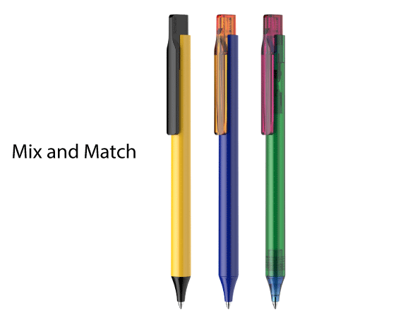 Bedrukte balpen Schneider Essential is een slanke mooi vormgegeven drukknop balpen, vervaardigd uit kunststof, zowel in ondoorzichtige (opaak) als ook in een transparante glanzende uitvoering. Er zijn 6 kleuren in opaak kunststof leverbaar en 8 in transparant. Voorstuk, bovendeel en clip kunnen uit verschillende kleuren worden samengesteld. Bedrukking is vanaf 1.000 stuks mogelijk. Er kan worden gekozen uit 4 schrijfkleuren. Als vulling wordt standaard de Schneider 774M met een edelstalen schrijfpunt geleverd met document vaste inkt. De edelstalen schrijfpunt staat garant voor lang, soepel en probleemloos schrijven en daarmee voor een top kwaliteit promotie pen