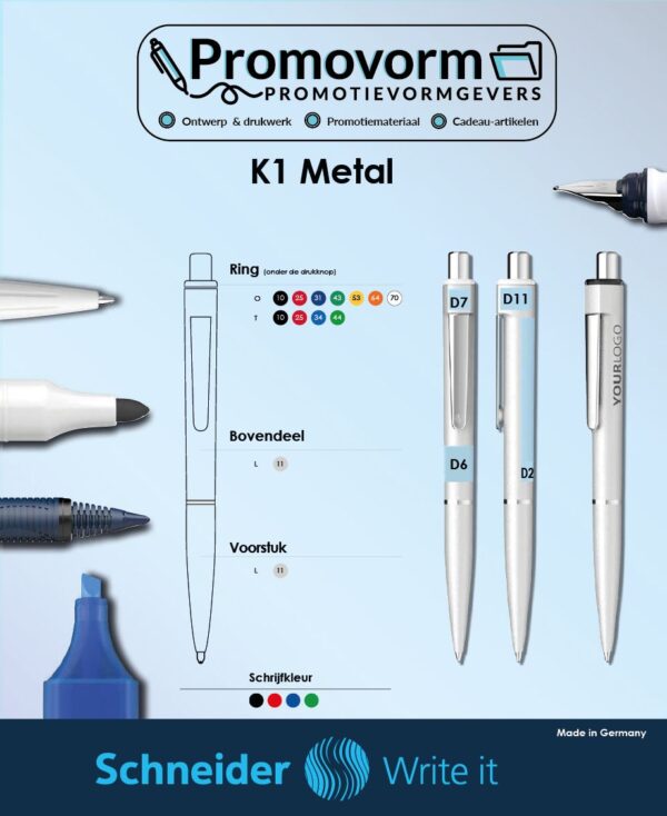 Schneider K1 Metal is een relatiegeschenk dat tijdloze klasse combineert met duurzaamheid. Het gaat verder dan een gewone pen en wordt een waardevol accessoire voor degenen die streven naar elegantie in zakelijke relaties. Kies voor de Schneider K1 Metal en geef een geschenk dat de tand des tijds doorstaat.