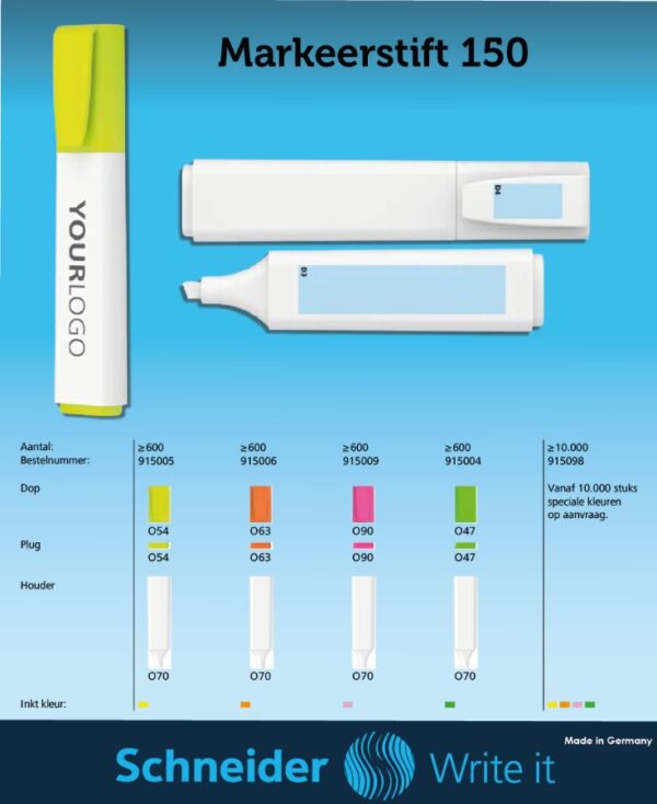 Bedrukte Tekstmarker Schneider 150 voor een opvallende promotie